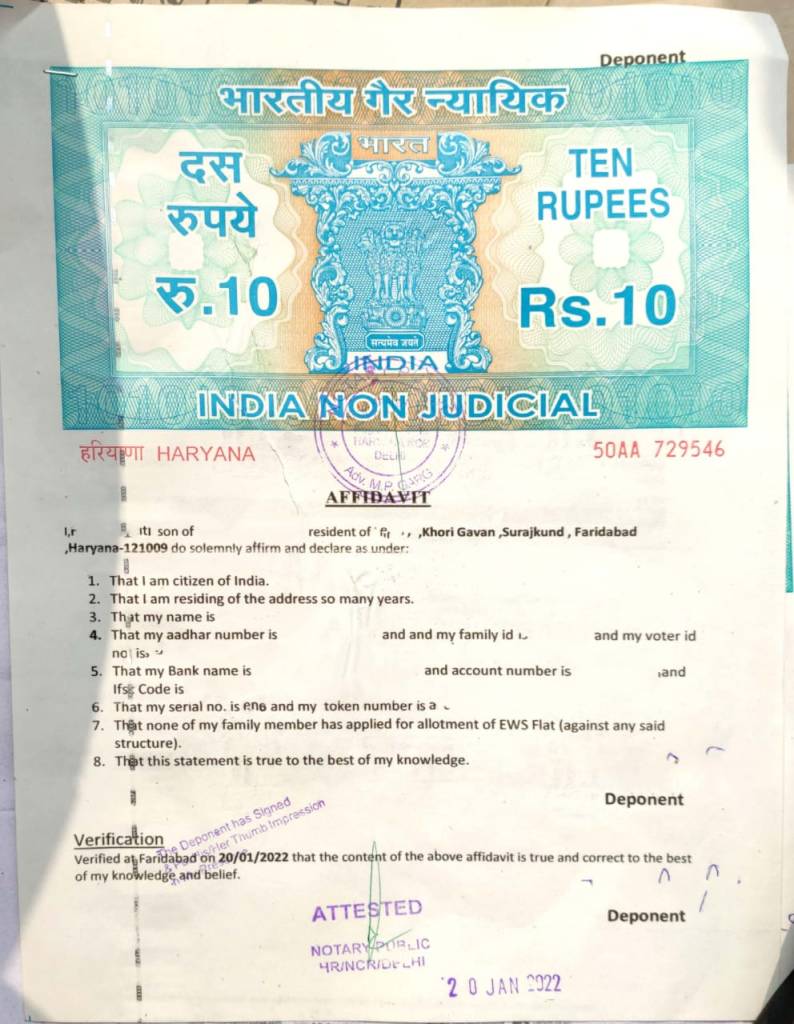 1- शपथ पत्र जिसको हरियाणा से आपको नोटरी करवाना होगा। दिल्ली वाला नहीं चलेगा।