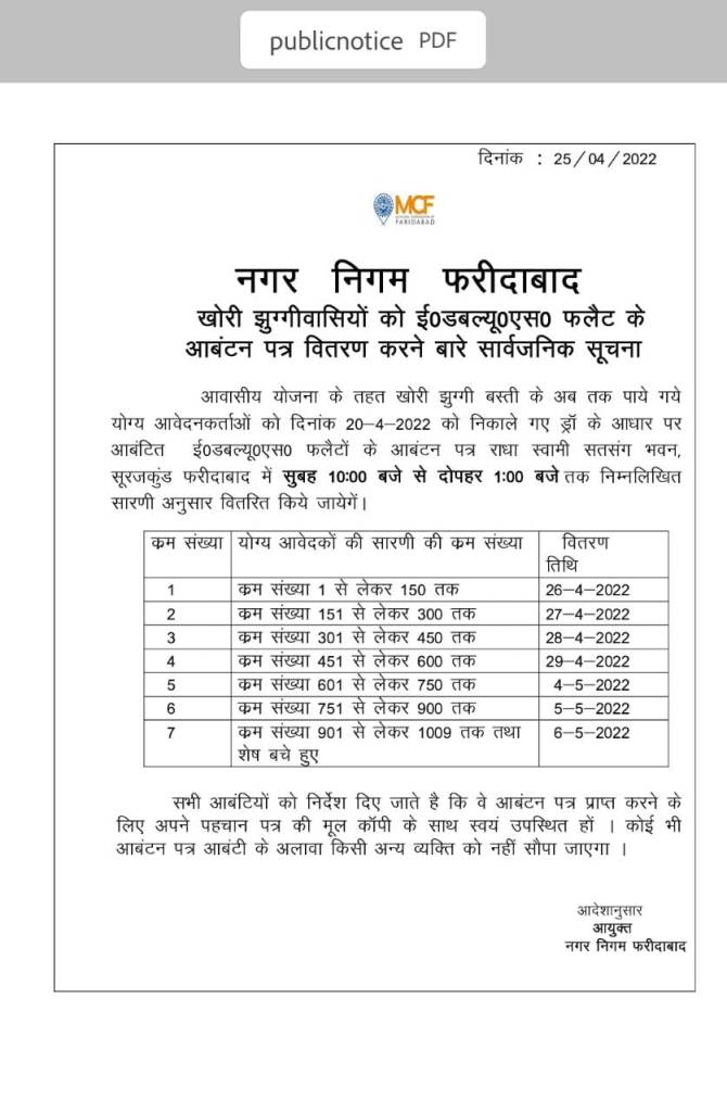 एक दूसरी खबर यह है कि नगर निगम फरीदाबाद के पोर्टल पर नोटिस निकला है हम साथ भेज रहे हैं उस पर लिखा है कि:—-