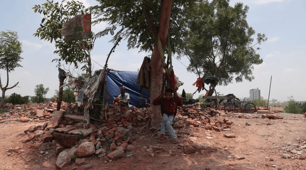 “We are poor. After our house was razed, we could only afford to rent a tiny room for Rs 2,300 a month. It cannot accommodate a family of six. So, we have kept our belongings there. The children sleep in the room when it rains, while we stay here amid the debris,” said a woman who settled in Khori in 2012.”