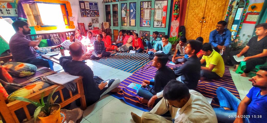 A workshop was held on 9 April with Khori Gaon residents to discuss the legal rights of people and what options are available to them. The book ‘Aam Admi aur Kanoon‘ (Common man and law) was also discussed.