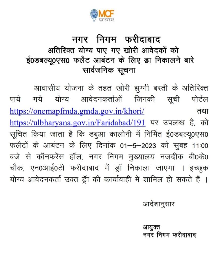 एम.सी.एफ द्वारा बनाई गई 245 नई सूची में जिन लोगों के नाम हैं, वे फ्लैट आवंटन के ड्रा के लिए बी.के चौक जाएं। हम इस अपडेट के साथ नोटिस भेज रहे हैं।