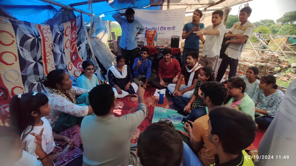 2 अक्टूबर 2024 को, टीम साथी ने खोरी गांव के बच्चों और युवाओं के साथ गांधी जयंती मनाई, जिसमें समाज और संस्कृति के प्रति जागरूकता बढ़ाने के लिए रोचक गतिविधियों का आयोजन किया गया। कार्यक्रम की शुरुआत महात्मा गांधी की तस्वीर पर माला अर्पण से हुई। हमने गांधीजी की विरासत और इस दिन के महत्व पर चर्चा की, जिससे युवाओं के लिए प्रेरणादायक माहौल बना।