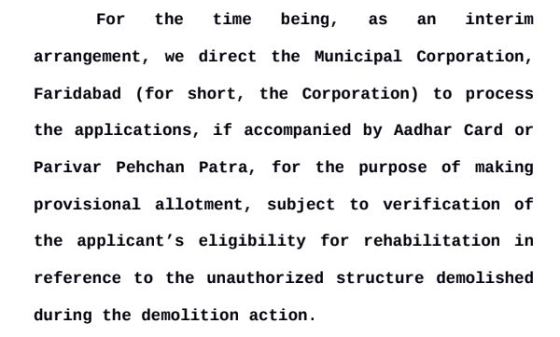 Supreme Court Directs Faridabad Municipal Corporation To Accept Aadhaar Card As Proof To Get ‘Provisional Allotment’
