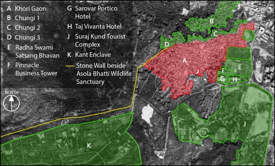 Khori Gaon is an informal settlement (basti) at the border of Delhi and Haryana and the foothills of the Aravallis. … More